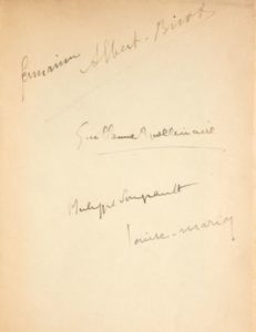Exemplaire enrichi sur le premier feuillet blanc des signatures autographes de