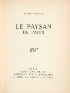 ARAGON, Louis. Le Paysan de Paris. Paris, Nouvelle Revue Française, 1926.