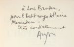 Envoi autographe signé sur le faux-titre : à Louis Broder, // pour l'habit rouge de P ierre // Mercadier - // très cordialement // Aragon