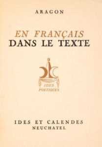 ARAGON, Louis. En français dans le texte. Neuchâtel, Ides et Calendes, [1943].