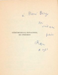 ENVOI AUTOGRAPHE SIGNÉ : à Pierre Bergé // son // vieil ami // fidèle //