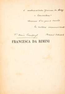 CRAWFORD, F. Marion. Francesca da Rimini. Traduit par Marcel Schwob. Paris, Librairie Charpentier et Fasquelle, 1902.