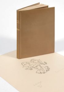 L'épreuve à grandes marges, numérotée 12/25, est conservée dans un étui et une chemise à dos et bandes du même box que la reliure.