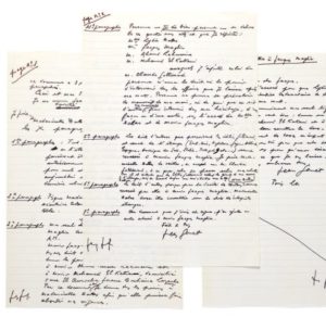Manuscrit autographe signé et paraphé à plusieurs reprises de 3 pages in-4 sur papier ligné.