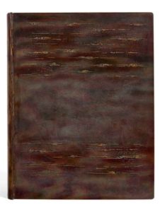 In-4 [323 x 246] de 207 pp., (3) ff. le premier blanc, 15 planches : veau brun nuancé gris, vert et grenat, partiellement martelé, succession de filets horizontaux lamés d'or et d'argent sur les plats, dos lisse portant le nom de l'artiste et le titre du livre en lettres à froid et lamés d'or et d'argent, encadrement de veau brun nuancé, orné d'un filet doré, de carrés dorés et de deux doubles filets ondulés à froid, doublures et gardes de soie moirée marron ornée de motifs brodés de fils mauves et dorés, tranches dorées sur témoins, couverture et dos conservés d'un seul tenant (Louise-Denise