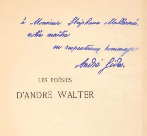 De poète à poète : précieux envoi autographe signé : à Monsieur Stéphane Mallarmé, // notre maître // en respectueux hommages // André Gide