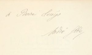 Précieux envoi autographe signé sur le faux-titre : à Pierre Louÿs // André Gide // "Sit Tityrus Orpheus" // Virgile (Eglog. VIII, 55)