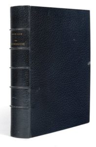 In-4 [214 x 165] de 503 pp., (2) ff. le dernier blanc : maroquin bleu foncé janséniste, dos à nerfs, doublures de maroquin beige bordé d'un filet doré, gardes de soie bleu foncé, tranches dorées sur témoins, couverture et dos conservés (Huser).