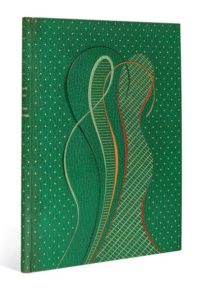 Manuscrit autographe de 17 ff. in-4 montés sur onglets : maroquin vert, plats ornés d'un décor abstrait composé de rubans ondulés de maroquin gris, noir, marron et fauve, formant de grands compartiments dont un orné de filets dorés horizontaux parallèles, et un autre décoré de filets dorés obliques parallèles s'entrecroisant, autour de ces décors ainsi que sur le dos figure un semé de points dorés, dos lisse, doublures bords à bords et gardes de box gris, tranches dorées, chemise à dos et bandes à recouvrement de maroquin vert, étui (Semet et Plumelle).