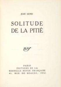GIONO, Jean. Solitude de la pitié. Paris, librairie Gallimard, 1932.