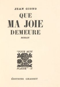 GIONO, Jean. Que ma joie demeure. Roman.