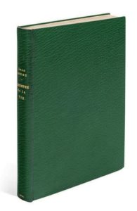 In-8 [221 x 161] de 302 pp., (2) ff. : maroquin vert foncé janséniste, dos lisse, doublures et gardes de box gris, tranches dorées sur témoins, couverture et dos conservés, chemise à dos et bandes à recouvrement de maroquin vert foncé, étui (Alix).