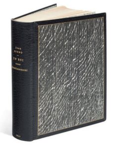 In-8 [187 x 137] de 285 pp., (2) ff. le dernier blanc : maroquin noir, papier noir et blanc bordé d'un filet doré collé sur les plats, dos lisse, doublures et gardes de papier noir et blanc, tête dorée, non rogné, couverture et dos conservés, étui (Alix).