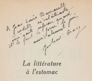 GRACQ, Julien. La Littérature à l'estomac. Paris, José Corti, 1950.