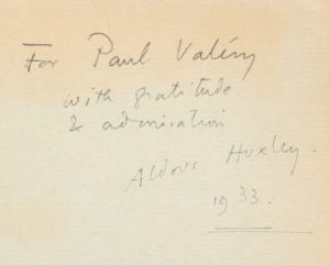 For Paul Valéry // with gratitude // & admiration // Aldous Huxley // 1933