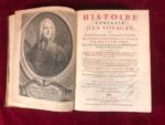 Portrait et 576 planches gravées, certaines doubles ou repliées dont environ 260 cartes, plans et vues. Le tome XVI (de 1761) est formé d’une Table alphabétique des matières contenues dans les XVI volumes de l’Histoire générale des voyages. L’atlas comprend 74 cartes repliées et 2 tables de langues. Il est relié en veau fauve marbré orné de fers dorés au dos, légèrement différents des autres et avec au centre des plats des armes couronnées dorées.