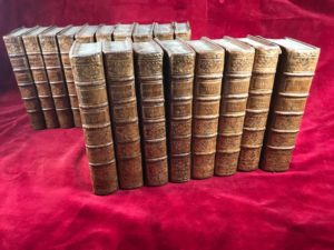 18 vol. in-12, plein veau fauve marbré, titre et tomaison sur les dos à nerfs ornés.