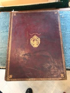 Les exemplaires en maroquin d’époque aux armes de la ville de Paris étaient destinés, selon leur décor, à la famille du roi ou aux différents ministres ; celui qui est ici présenté comporte sur le plat supérieur, dans un bandeau flottant en lettres dorées l’inscription : « Menus plaisirs du roy ». Quelques frottements, petites fentes aux mors, coins restaurés, restaurations de maroquin, quelques taches et griffures ; quelques rousseurs.