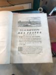 Belles illustrations gravées à l'eau-forte comprenant une grande vignette de titre par SOUBEYRAN d'après BOUCHARDON, un grand bandeau par RIGAUD figurant l'ensemble de la joute nautique, des lettrines répétées. 13 grandes planches, dont 8 en double-pages, dessinées et gravées par J.-F. Blondel, professeur à l'Académie d'architecture, Gabriel, Servandoni... la planche n°8 est numérotée 2 fois et il n’y a pas de planche n°6. Sont représentées les illuminations et feux d'artifice donnés sur la Seine devant le Louvre, les bateaux illuminés ou encore des coupes du bâtiment de l'Hôtel de ville de Paris avec des scènes de bal. La fête eut lieu sur la Seine, entre le Pont-Neuf et le Pont- Royal qui accueillit une architecture éphémère conçue pour être prolongée la nuit. Le lendemain, un bal masqué, donné dans l'Hôtel de ville, transformé et « reconstruit » pour l'événement, dura jusqu’à 8 h du matin. Un peu plus tard, dans la même journée, Louise-Élisabeth quittait sa jumelle, sa famille et Versailles pour rejoindre son mari en Espagne où elle se remaria le 30 octobre.