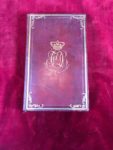 P., Henriot, 1837. In-8, plein veau rouge, titre doré, dos orné. Aux plats, filets dorés et fleuron d’angle avec au centre monogramme couronné et inscription dorée : « donné par le prince royal ». 300 vignettes d’après ROQUEPLAN, LORENTZ, GIRARDET, etc. Ff roussis.