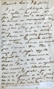HUGO, Victor. L.A.S., à son «cher philosophe et cher apôtre», le pasteur Nathanaël Martin-Dupont (1834-1910). Hauteville House, 30 juillet [s.d.]. 1 p. in-8. Manque en pied avec atteinte au texte, déchirures.