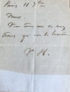 HUGO, Victor (1802-1885). Billet autographe paraphé, adressé au pasteur Nathanaël Martin-Dupont …
