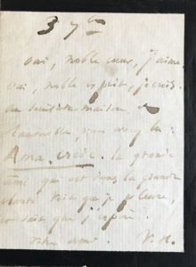 Poème épistolaire : «Oui, noble coeur, j'aime. Oui, noble esprit, je crois. Au seuil de ma maison, à Hauteville, vous avez lu : Ama, crede. La grande âme qui est dans la grande clarté voit que je pleure, et sait que j'espère. Votre ami. V.H.».