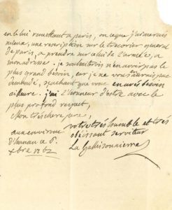 Campagne en Allemagne.« Le régiment reste toujours dans les environs d'Hanau pour y consommer les magasins. Dès qu'ils seront finis, nous irons à un autre magasin, ou bien nous nous raprocherons des frontieres du royaume ». Ils resteront certainement à l'arrière. « Mr le Maréchal de Soubise est encore à Francfort, et j'ignore quand il en partira. La réforme des troupes légères commence à avoir lieu, et on en voit beaucoup de çà et de là qui ne scavent que devenir »... Il ignore s'il sera du nombre des réformés, mais le bruit court ques les dragons seront bien traités et qu'ils ne seront pas réformés. « Voilà le tems qui s'approche de me défaire des mes équipages, et de congédier mes domestiques, d'autant qu'ils me coutent beaucoup à nourir »... Il demande à son père de lui envoyer del'argent...