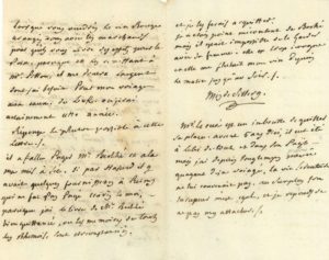 Sur ses affaires à Paris, concernant notamment le commerce du vin de Champagne. Il prie Mitoux de lui faire « un relevé exact de tout le vin que vous m'avez envoyé depuis un an. J'ai perdu mon livre. […] Vous enverrez 300 bouteilles de vin à Mr Hazon en son Hotel rue Ste-Anne »… Il a besoin de rentrées d'argent, et demande, lorsqu'il vendra le vin rouge, de s'arranger avec les marchands pour le prix afin qu'il puisse toucher l'argent dont il aura besoin pour son voyage aux eaux où il ira certainement cette année… « Mr le Curé est un imbécile de quitter sa place. Avant 5 ans d'ici il eut été à l'abri de tout et dans son paÿs »…