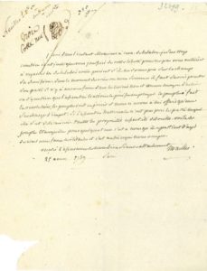 Louis-Marie, vicomte de NOAILLES (1756-1804) député aux États-Généraux, un des promoteurs de la nuit du 4 août, général, il mourut dans l'expédition de Saint-Domingue. L.A.S., 25 août 1789 ; demi-page in-4.