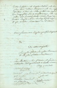 « Vous etes le pere du peupole, Votre Majesté a daigné nous en assurer ; elle nous a fait dire qu'elle n'etait heureuse que de notre bonheur, inquiette que de nos maux. [...] nous avons reçu dans la salle ou les electeurs etoient assemblés, la banniere federative ; un concours de peuple etait assemblé pour l'accueillir, les Gardes nationalles de tout le departement s'etaient reunies pour l'escorter. Ce signe parlant de la liberté française a porté dans tous les cœurs un saint fremissement, un cri général s'est élevé, et ce cri etait vive notre roy, vive notre tendre père, vive le Restaurateur de la liberté françoise ».Ils demandent au Roi de célébrer ce beau jour en accordant sa grâce à un déserteur du Régiment de Royal-Navarre, Étienne Solignac : « il est coupable, nous le scavons, mais le Roy est bon.Image de l'être suprême, comme luy il est misericordieux. […] Ah Sire ! Laissés vous flechir par les prieres de ceux que vous appellés vosenfants. Vous avés bani tout intermediaire entre le throne et le peuuple [...] Oh le plus tendre, oh le plus cheri de tous les peres, oh le meilleur de tousles Roix, jettes un regard de compassion sur ce malheureux »... Parmi les 10 signataires, on relève les nomsde Gabril FAYE, Président, et de Pardoux BORDAS (tous deux seront conventionnels de la Haute-Vienne), Gaillard secrétaire, Barbou commandant de la Fédération, Saint-Priest… Ancienne collection Patrice Hennessy.