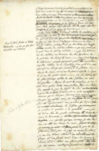 Philippe-François-Nazaire FABRE D'ÉGLANTINE (1750-1794) acteur, poète et auteur dramatique, député de Paris à la Convention, il prépara le calendrier révolutionnaire ; guillotiné avec les Dantonistes. L.A. (minute), [1791] ; 1 page et demie in-fol., nombreuses ratures et corrections.