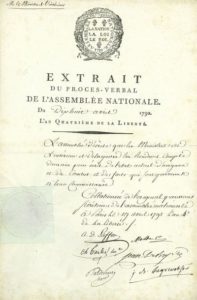 ASSEMBLÉE NATIONALE. 2 P.S. par plusieurs députés, avril-mai 1792 ; 1 page in-fol. chaque avec vignette et en-tête Extrait du procès-verbal de l'Assemblée Nationale.