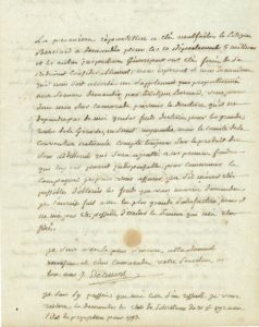 Sur la réduction du budget et les travaux à faire dans le département de la Gironde : « je crains que le 55,000ll pour les ouvrages d'art et la navigation ne soient encore réduit, mais comme il y a un fonds de réserve de 600,000ll, vous pourriez peut être obtenir un supplément pour les demandes de vos députés de la Convention nationale. On nous a expressément dit de ne demander que des fonds pour les entretiens »… Pour les fonds extraordinaires, il devraient être du tiers du produit annuel, et il espère un supplément : « Vous pouvez donc, mon cher camarade, prévenir le directoire qu'il ne dépendra pas de moi que les fonds destinés pour les grandes routes de la Gironde ne soient augmentés »…
