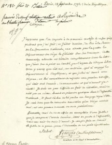 Nicolas-Louis FRANÇOIS DE NEUFCHÂTEAU(1750-1828) homme d'État et littérateur ; député à la Législative, ministre de l'Intérieur, il fut un des Directeurs, et devint sous l'Empire sénateur et comte. L.A.S., 28 septembre 1793, au Citoyen Panis ; 1 page in-4.