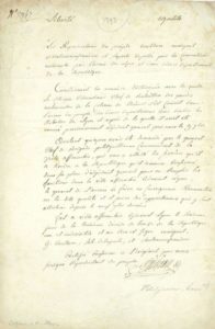 Les représentants du peuple, devant la conduite distinguée du citoyen Charabaud, chef de Bataillon des gardes nationales de la colonne de Thiers, le confirment « dans sa place d'adjudant général pour en remplir les fonctions dans la ville affranchie ci devant Lyon »…