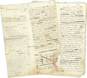 Charles BARBAROUX (1767-1794) secrétaire de la Commune de Marseille et meneur du fameux bataillon des Marseillais, conventionnel (Bouches-du-Rhône) ; proscrit avec les Girondins, il se cacha, fut découvert et tenta de se tuer avant d'être guillotiné. Manuscrit autographe [fin 1793] ; 21 pages petit in-4avec ratures et corrections (mouillure avec petit manque affectant quelques mots dans l'angle inférieur des 2 premières pages).