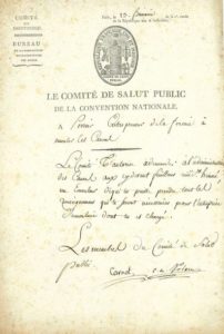 Lazare CARNOT (1753-1823) mathématicien et homme politique ; conventionnel (Pas-de-Calais), membre du Comité de Salut public, organisateur de la Victoire des armées de la République. 2 L.S. cosignées par Claude-Antoine PRIEUR (de la Côte d'or), 23 frimaire II et 18 ventôse II (13 décembre 1793 et 8 mars 1794) ; 1 page in-fol. chaque à vignette et en-tête du Comité de Salut public, adresse à la 2e.