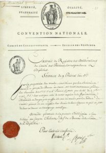 Claude-Antoine RUDEL (1719-1807) conventionnel (Puy-de-Dôme). P.S., cosignée par Hector de Saint-Prix, 9 prairial III (28 mai 1795) ; 1 page in-fol., vignette, en-tête Convention Nationale. Comité de Correspondance. Section des Dépêches, cachet encre et sceau de cire rouge.