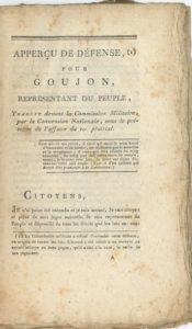 Les Premiers Jours de Prairial [par Eusèbe Salverte]. Le Procès des 31 mai, 1er et 2 juin, ou la Défense des 71 représentans du Peuple, par Michel-Edme Petit… Défense du représentant du Peuple Goujon, député […] traduit devant la commission militaire, sous le prétexte de l'affaire du 1er prairial. Prospectus de 1er Prairial an III, scène historique… par Réveil. Plus un extrait de La Décade philosophique. Ancienne collection Léon Muller (sous chemises autographes).