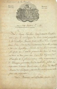 DIRECTOIRE EXÉCUTIF. P.S. par le Président LE TOURNEUR et le secrétaire général LAGARDE, Paris 5 ventose IV (24 février 1796) ; 2 pages et demie in-fol., vignette du Directoire exécutif, sceau sous papier.