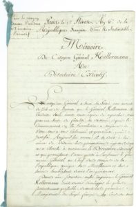 Belle copie préparée « Pour le citoyen BARRAS, President du Directoire Executif », de son « Mémoire du Citoyen Général Kellermann au Directoire Exécutif ».
