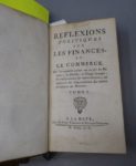 DUTOT Réflexions politiques sur les Finances, et le Commerce. Où l'on examine quelles ont été sur les Revenus, les Denrées, le Change étranger & conséquemment sur notre Commerce, les influences des Augmentations & des Diminutions des valeurs numéraires des Monnoyes - A La Haye, les frères Vaillant & Nicolas Prévost, 1754 2 vol. in-12, reliés plein veau.