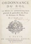 Du 27 septembre 1776. Paris, De l’Imprimerie royale, 1776. — Ordonnance du roi, concernant les Officiers de Port, du 27 septembre 1776.