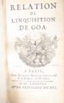 - [DELLON (Charles)]. Relation de l'Inquisition de Goa. Paris, Daniel Horthemels, 1688. In-12. 5 (sur 6) figures gravées sur cuivre, reliure de l'époque usagée.