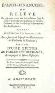 - Réponse à l'Auteur de l'Anti-Financier. La Haye, 1764.