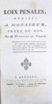 DUFRICHE DE VALAZÉ (Charles-Éléonore). Loix pénales, dédiées à Monsieur, frère du Roi. …