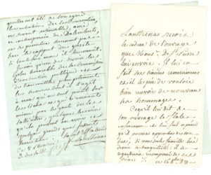 envoie [les Vœux d'un solitaire]. Il lui en fait ses sincères remerciemens et il le prie de vouloir bien recevoir de nouveau ses hommages ». Il le remercie de son appréciation pour son ouvrage [Inconvénients du droit d'aînesse, ouvrage dans lequel on démontre que toute distinction entre les enfants d'une même famille entraîne une foule de maux] : « Ce qu'il dit de son ouvrage le flatte infiniment et lui fait espérer qu'il pourra approcher de son but ; si une seule famille lui devait sa tranquillité, il se regarderait récompensé de ses peines »… On joint une L.A.S., 8 pluviôse II (27 janvier 1794 ; 2 p. in-8), concernant un secours de la Commission d'instruction publique, pour le physicien lyonnais Devillers, « porté dans la liste des gens de lettres et savans que la Convention a voulu secourir ».