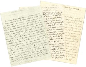 avait lutté pour réhabiliter son père, l'ancien gouverneur des Indes. 5 L.A. (2 signées « L »), Angleterremai 1792-septembre 1793, à Lord Sheffield ; 26 pages in-4, une adresse (une lettre avec bord effrangé). Intéressante correspondance d'émigration. 4 mai 1792. Lally relate l'assassinat du malheureux Théobald de Dillon, général de l'Armée du Nord, massacré par ses soldats, le 29 avril 1792, et fait état de la situation militaire des généraux Biron, Lafayette, Rochambeau. Il prie d'intervenir pour obtenir l'élargissement de son beau-frère, John Halkett, détenu au Temple, qui est de nationalité anglaise. - Richmond Lundi [7 décembre]. « Maret part pour la France. […] La République prétend qu'elle veut des communications officielles ou point. Noël son second reste encore. Il avait écrit à la fin de novembre que l'insurrection allait se faire ici. » Mais il n'en est rien. « Il meurt de peur de la suspension d'habeas corpus, il a mis déjà tous ses papiers à couvert ». À propos de l'interrogatoire de Louis XVI : « La bêtise des questions ne console pas de l'avilissement des réponses »… Twickenham 25 août 1793. « Il faut mourir sans remord et pour cela se dire en mourant qu'on a plaidé jusqu'à extinction contre le Maratisme des Souverains qui ne vaut pas mieux que celui des Sans culottes, et contre le brigandage couronné qui s'étend bêtement de la Pologne à la France, sans songer que le Brigandage déculotté qui a mille fois plus de bras et plus de ressorts que lui finira par le dévorer et avec lui l'Europe entière »…Il est amer et se demande « si cet inconcevable refroidissement » ne vient pas de « la stupide aristocratie de Coblentz ». La France se déchire : « Compter pour rien la mort de la Reine et peut-être calculer sur cette mort, les moyens de plus qu'elle donnera pour anéantir la France ; compter pour rien cinq cent mille familles que les loix agraires, la banqueroute et le démembrement réduiront à manquer de pain. C'est le machiavélisme le plus vil et le plus odieux dont on ait encore eu l'idée ; c'est un Brigandage plus détestable que celui d'Attila »… Lally cite longuement la llettre de Mallet du Pan accompagnant son ouvrage analysant la Révolution [Considérations sur la nature de la Révolution de France]… - 10 septembre. « Mais ne voilà-t-il pas que je me sensAnglais ? Quelle que soit ma désapprobation du Siège de Dunkerque, actuellement qu'il est entrepris, je ne pourrais pas souffrir que les armes britanniques y reçussent un échec. Faites donc bien vite cette conquête inutile, et quand vous aurez donné ce petit amusement aux Badauds de la Cité, allez enchainer les monstres de la Convention. […] Vous me sommez, mon cher Lord, de vous dire quel droit a la France à l'Alsace, à la Flandre et à la Lorraine ? Un droit que vous allez trouver incontestable ; le droit qu'a une certaine Albion au Bengale, à Gibraltar et au Canada »... Il s'inquiète vivement du sort de la ReineMarie-Antoinette ; Mounier a offert ses services aux Princes qui l'ont repoussé, le trouvant « trop marquant » ; les combats sont partout meurtriers, à Dunkerque comme à Manheim ; il parait « que Sémonville, quand il a été arrêté, avait sur lui les diamants du garde-meubles »… - Londres 27 septembre 1793. Il a appris le désastre de Dunkerque, mais espère en Toulon : « Je crois que la France sera sauvée par Toulon, c'est à dire que l'Europe sera sauvée par l'Angleterre ». Il est allé à la Cour où « le Roi a écouté avec un intérêt prodigieux quelques détails que j'avais reçus la veille sur l'état du pauvre petit Roi de France [Louis XVII]et les a répétés avec sensibilité dans son Cercle. » Il a offert ses services au Roi, en grand secret, et espère être employé. Il revient sur le sort du « pauvre petit Joas », et transcrit « ce qu'on m'en a dit dans un papier écrit à l'encre blanche qui m'est arrivé avant-hier de Paris : « Vous avez tous été déchirés de la séparation de la mère et de l'enfant. Chacun a cherché à faire des conjectures, aucune ne parait solide ; ils ne sont pas malades. L'Enfant est bien traité, gâté même par ceux qui en sont chargés ; in n'a pas prononcé le nom de sa mère, il ne veut se promener qu'où elle se promenait ; il a été triste d'abord, l'enfance l'a sauvé. Mais cette malheureuse mère ! à quels déchirements nous sommes livrés ! » ». Il précise que ce billet lui est arrivé « autour d'un soulier de Pauline ».On joint une L.A.S. de Pauline de Pully, ce 23, à Lady Sheffield : elle est bloquée à Boulogne avec sa tante et elles ne savent pas quand et comment elles pourront regagner l'Angleterre…