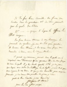demande de faire un errata dans le prochain numéro de son journal. « Il parait un nouveau journaldans lequel on a imprimé un Testament qu'on pretend être de ma façon et dans lequel il y est mal parlé detoi je te jure que depuis ma sortie de l'abbaye le 4 Sepbre je n'ai écrit que mon agonie de 38 heures et queje n'ai travaillé pour auqu'un journal je ten donne ma parolle tu peux y croire. Porte toi bien Camille jesuis tout à toi »...